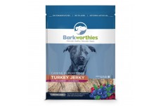 Barkworthies Turkey w/Cranberry & Blueberry Superfood Jerky 4oz Barkworthies Turkey Superfood Jerky is a very digestible treat that is high in protein to support muscle growth and development while being both grain and gluten free. Made with real turkey, cranberries and blueberries, it is rich in vitamins and fiber to support the digestive system. Our Barkworthies Turkey Superfood Jerky is rich in antioxidants to support a healthy immune system, and promotes anti-inflamation, dental and digestive health. Each piece is baked to perfection, so it's simply bursting with savory aroma, texture and flavor your dog is sure to love. Most Barkworthies' all-natural dog treats and chews are completely preservative-free and additive-free. Please note that this product is not for human consumption. Please supervise your pet while giving a treat or chew and dispose of properly if it becomes a choking hazard or develops sharp edges.