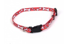 Coastal Lil Pals Adjustable Patterned Collar Red White Bone 5/16X6-8In