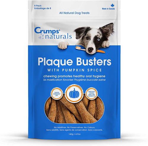 Keep the spirit of fall alive all year round with these delicious dental treats! Every Pumpkin Spice Plaque Buster contains all-natural pumpkin spice, sweet potato, citrus pulp, and coconut oil. It's a truly unique treat that assists in turning the scent of your dog's breath into the smell of a colourful autumn breeze.