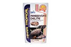 Hikari Massivore Delite Nuggets Scientific diet for super-sized carnivorous fish. Large, easy-to-feed sinking pellets reduce parasite or bacteria transfer common with live foods. Nutritionally complete to offer higher levels of necessary vitamins and minerals. Great for large catfish. Fish meal, krill meal, brewers dried yeast, cassava starch, soybean meal, wheat starch, fish oil, wheat flour, dried seaweed meal, spirulina, DL-methionine, potato starch, astaxanthin, L-lysine, canthaxanthin, garlic, choline chloride, vitamin E supplement, L-ascorbyl-2-polyphosphate (stabilized vitamin C), inositol, d-calcium pantothenate, riboflavin, vitamin A supplement, thiamine mononitrate, pyridoxine hydrochloride, niacin, folic acid, vitamin D3 supplement, biotin, vitamin B12 supplement, ferrous sulfate, magnesium sulfate, zinc sulfate, manganese sulfate, copper sulfate, calcium iodate, red 3 (artificial color)."