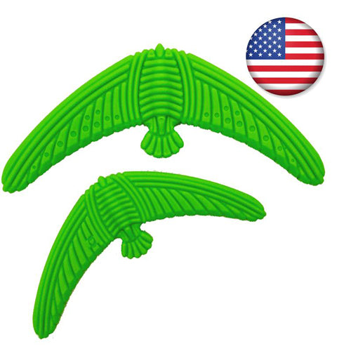 Our Tuffut-Flex? Lele toy loves you best! Boomerang design- inspired, Lele is Hawaiian for jump, fly, or soar, and that?s how you and your pup will Lele-play! With many points of paw-pressure, Lele?s shape of swoops, curves and wings give pup-parents plenty of spots to grab on and send Lele flying (with your HuggleHound in hot pursuit!). This cleverly designed toy has multiple functions. Toss in the air for a fun game of fetch on water and on land!