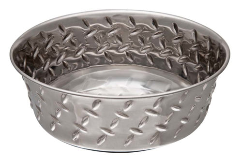 Loving Pets Diamond Plate Bowls with Non Skid Bottom Dog Dish Bowl Silver 1 Pint