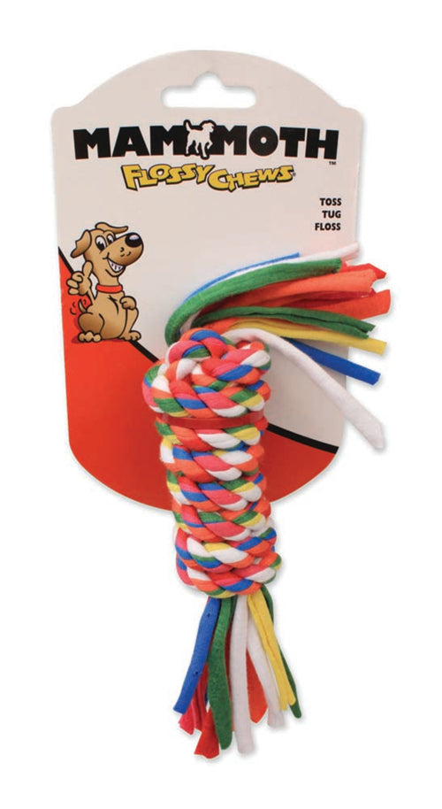 Small 10in Cloth Rope Bars. Mammoth Flossy Chew Cloth Rope Toys are made from premium cloth materials in fun shapes dogs love. The cloth materials floss dogs' teeth as they chew and play. Great for tossing and chewing. Perfect for small - medium sized breeds. Great for strong chewers. Play time is an important part of bonding between dog and owner. This toy is perfect for interactive playing & creating the positive play experience with your dog!