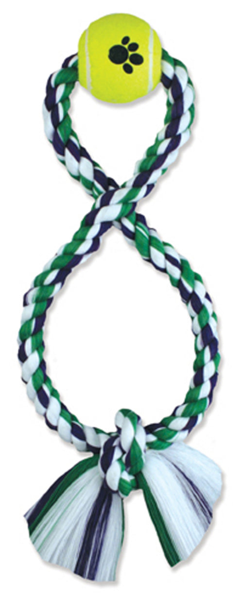 Mammoth Pet Products Figure In Tug Dog Toy W/Tennis Ball Rope With Tennis Ball Multi-Color 15 In, Medium