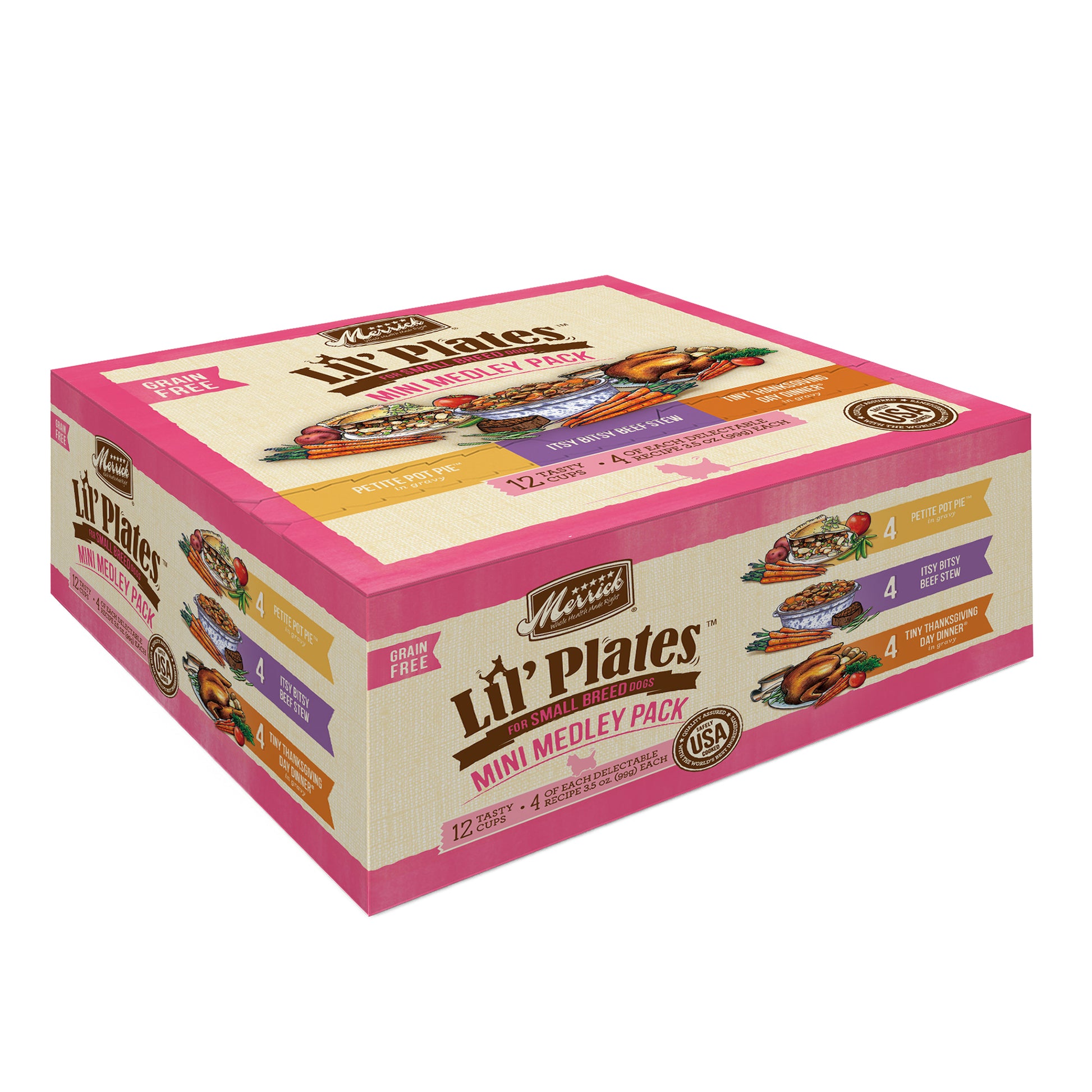 Variety is important to lil? pups. Our Lil? Plates Variety Pack features 12 trays in three popular varieties (Petite Pot Pie, Itsy Bitsy Beef Stew and Tiny Thanksgiving Day Dinner) for the pet parent to provide their tiny pup with a variety of flavors in convenient single servings.