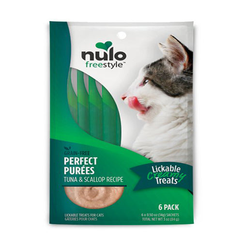When nutrition meets love, the result is simply purrr-fect. Nulo FreeStyle Tuna & Scallop Perfect Puree is a tasty way to show your tiny tiger how special they are to you while delivering a highly nutritious reward! Serve directly from the packet as a lickable treat or use as a topper to kibble or canned food! Nulos Perfect Purees are a treat for pet parents to feed and for cats of all ages to eat! A highly nutritious reward|Serve directly from the packet as a lickable treat or use as a topper to kibble or canned food.Tuna Broth, Tuna, Chickpeas, Scallop, Guar Gum, Tuna Extract, Inulin, Natural Flavor."
