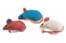 Three colorful burlap mice with catnip