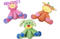 Plush baby teething ring design with squeaker is perfect for small dogs/puppies. 3 character assortment. Squeaker included, Soft, plush toy. Small size is perfect for puppies or small dogs, 3 character assortment