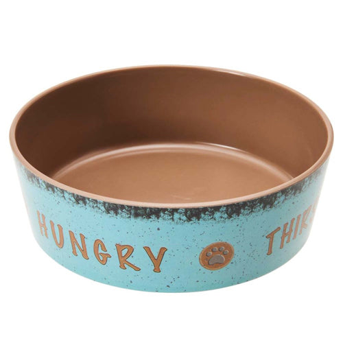 Spot Unbreak-A-Bowlz Stoneware Dog Bowl Turquoise, Tan Large 8 in